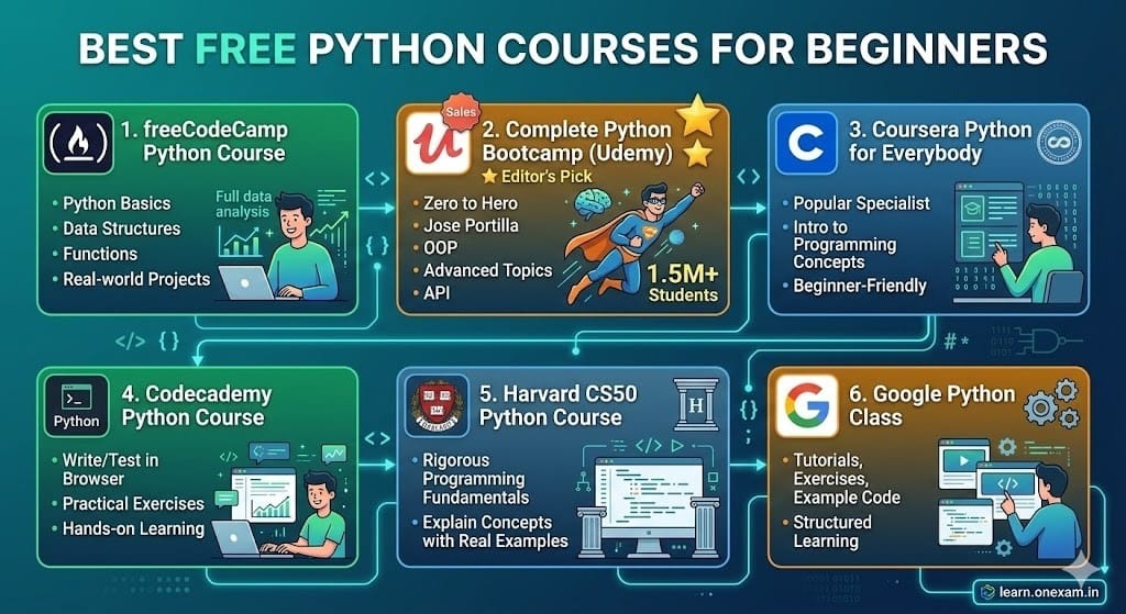 Looking for the best free Python courses for beginners in 2026? Python is the most beginner-friendly programming language in the